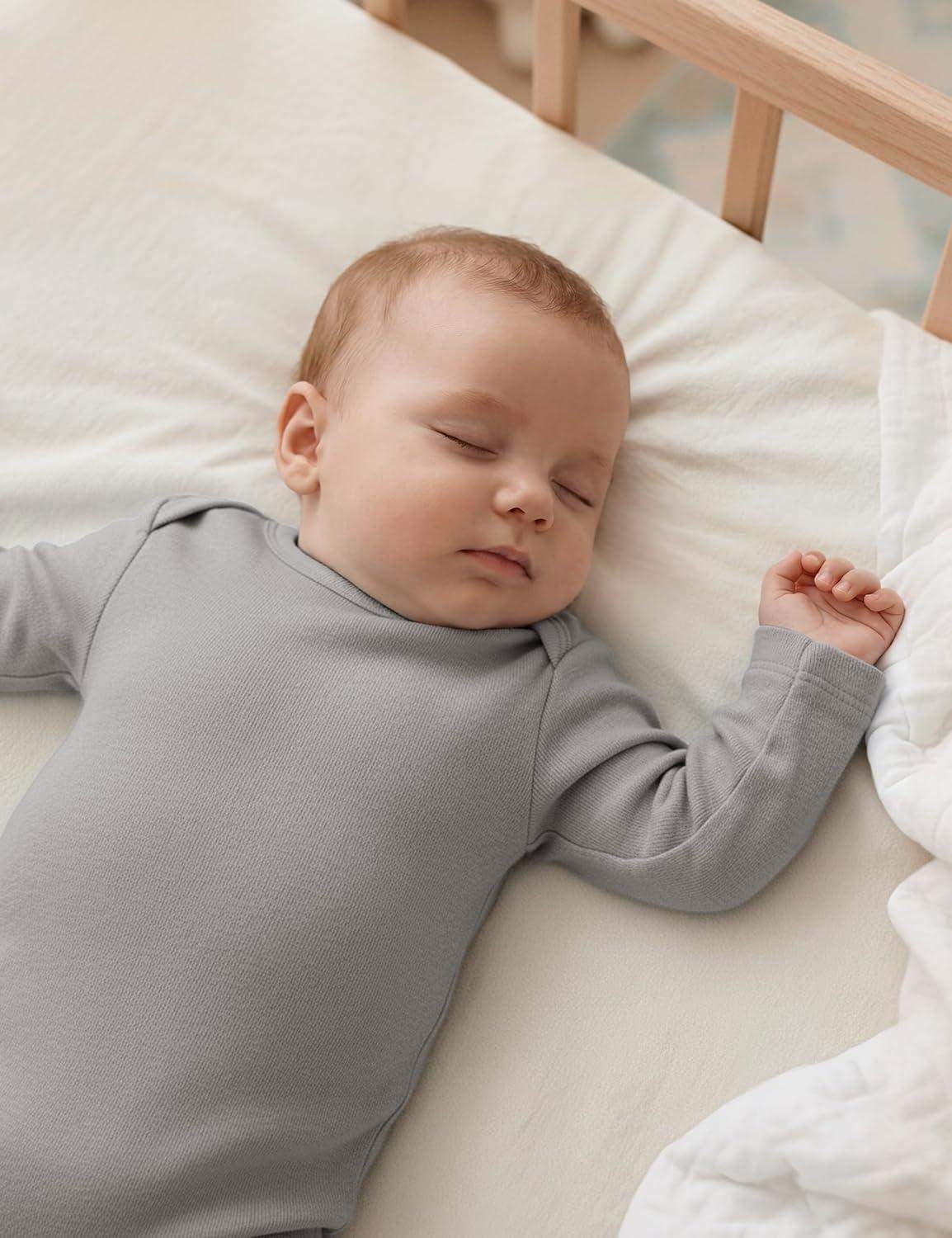 imageYoofoss Baby Bodysuits 100 Organic Cotton Baby Onesie Long Sleeve Baby Boys Girls Clothes Soft Newborn Infant Romper 3 PackBlueGreenGrey