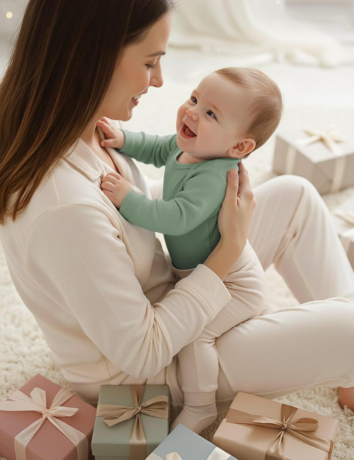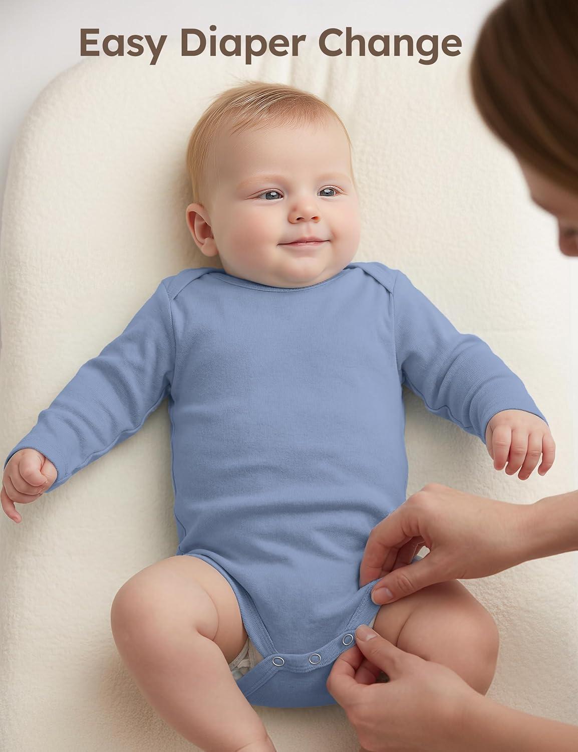 Yoofoss Baby Bodysuits 100% Organic Cotton Baby Onesie Long Sleeve Baby Boys Girls Clothes Soft Newborn Infant Romper, 3 Pack(Blue/Green/Grey)