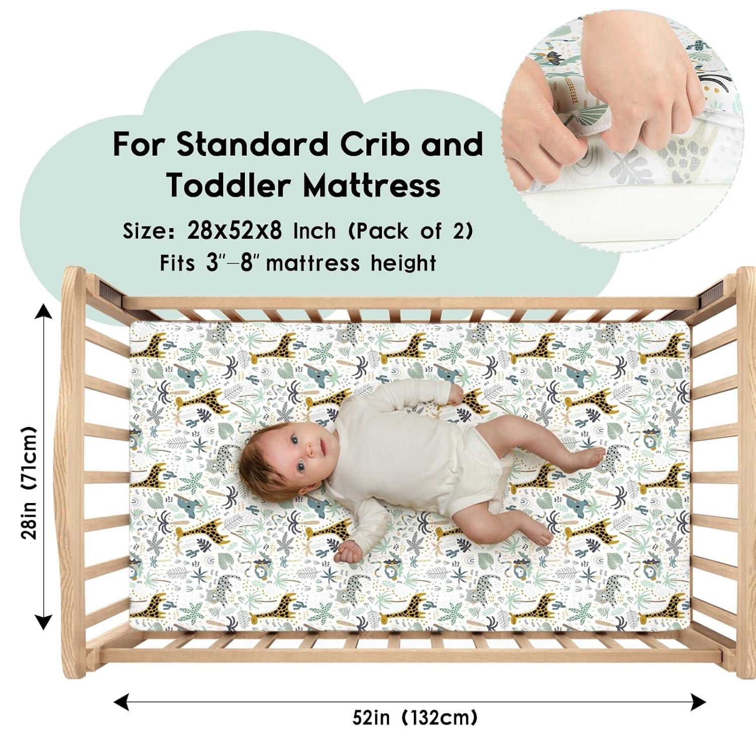 imageYoofoss Baby Crib Sheets for Boys Girls Fitted Crib Sheet 2 Pack for Standard Crib and Toddler Mattress Super Soft Microfiber Baby Sheet 28x52x8inApricotGreenGreen  Giraffe