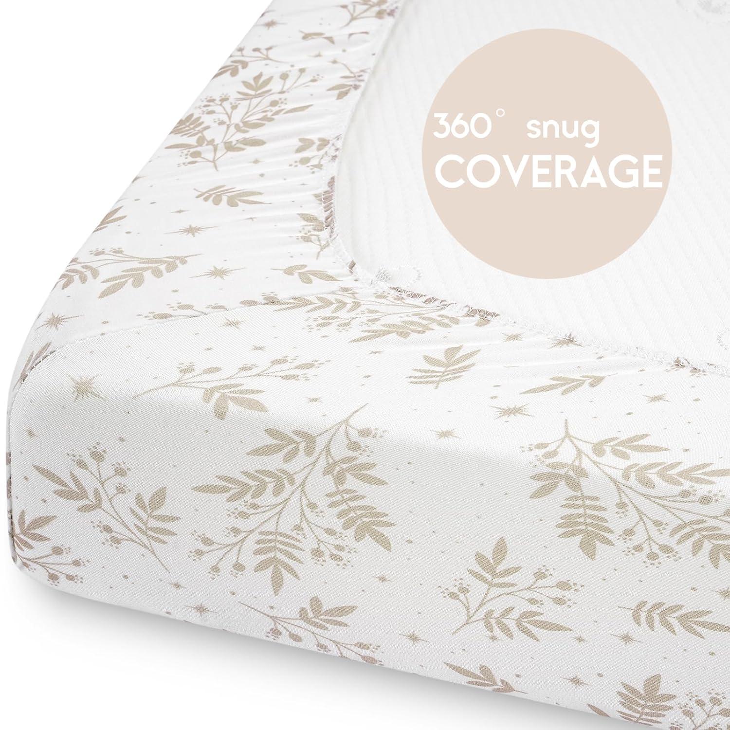 Yoofoss Baby Crib Sheets for Boys Girls, Fitted Crib Sheet 2 Pack for Standard Crib and Toddler Mattress, Super Soft Microfiber Baby Sheet 28x52x8in(Green+Leaf)(Brown+leaf)