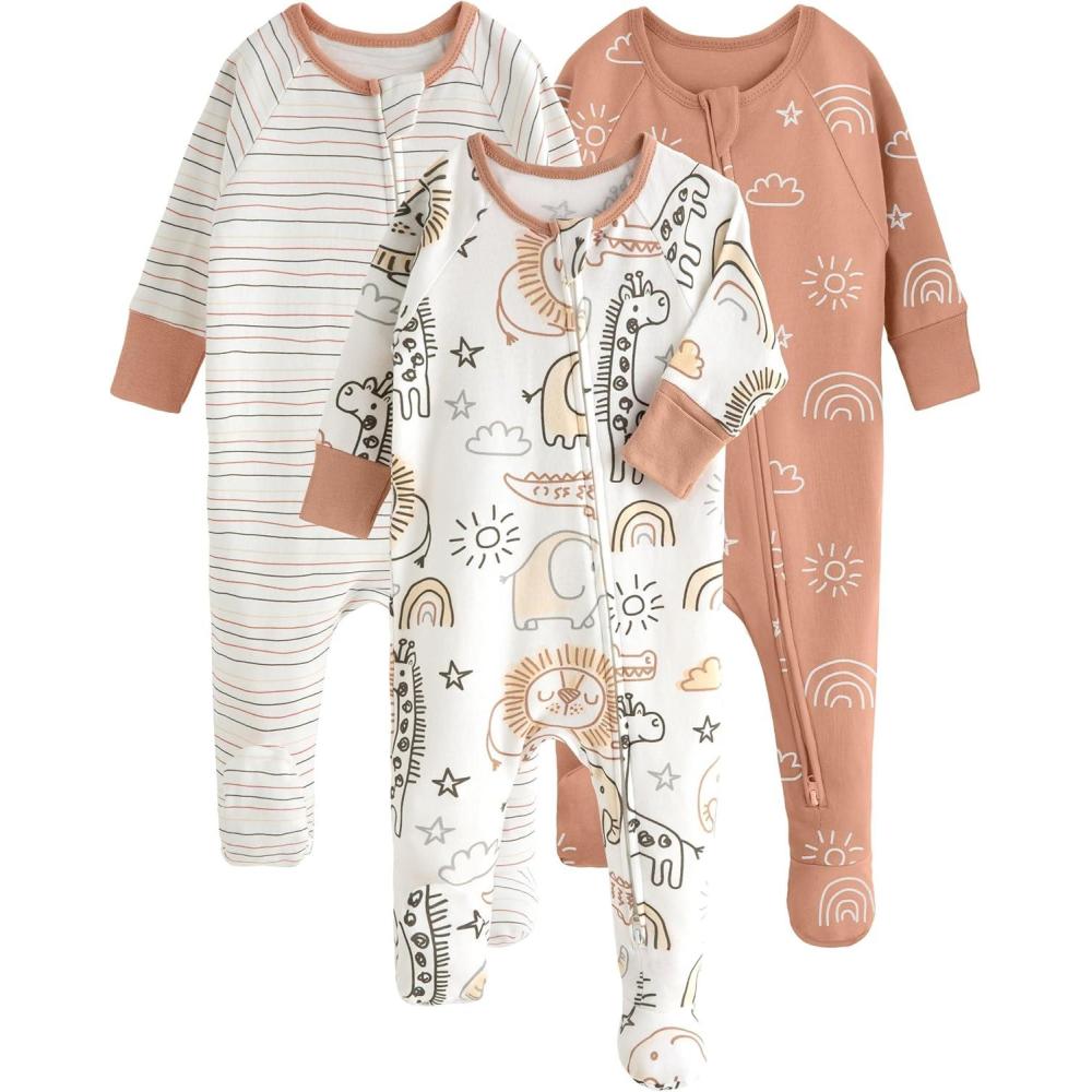 imageYoofoss Baby Pajamas 100 Organic Cotton Baby Sleepers for Newborn 03 36 69 Months Boys Girl Clothes 3pcs Footed PJsBrown Animal