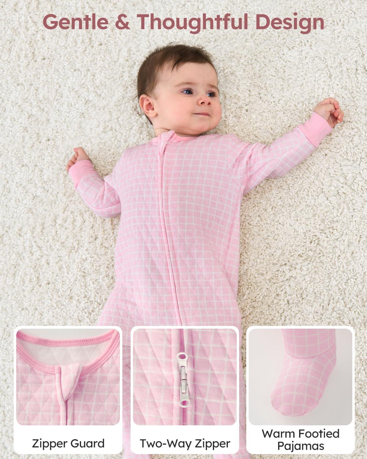 Yoofoss Baby Pajamas Organic Cotton Baby Sleepers for Newborn 0-3 3-6 6-9 Months Boys Girl Clothes Footed Pjs(Pink Flowers)