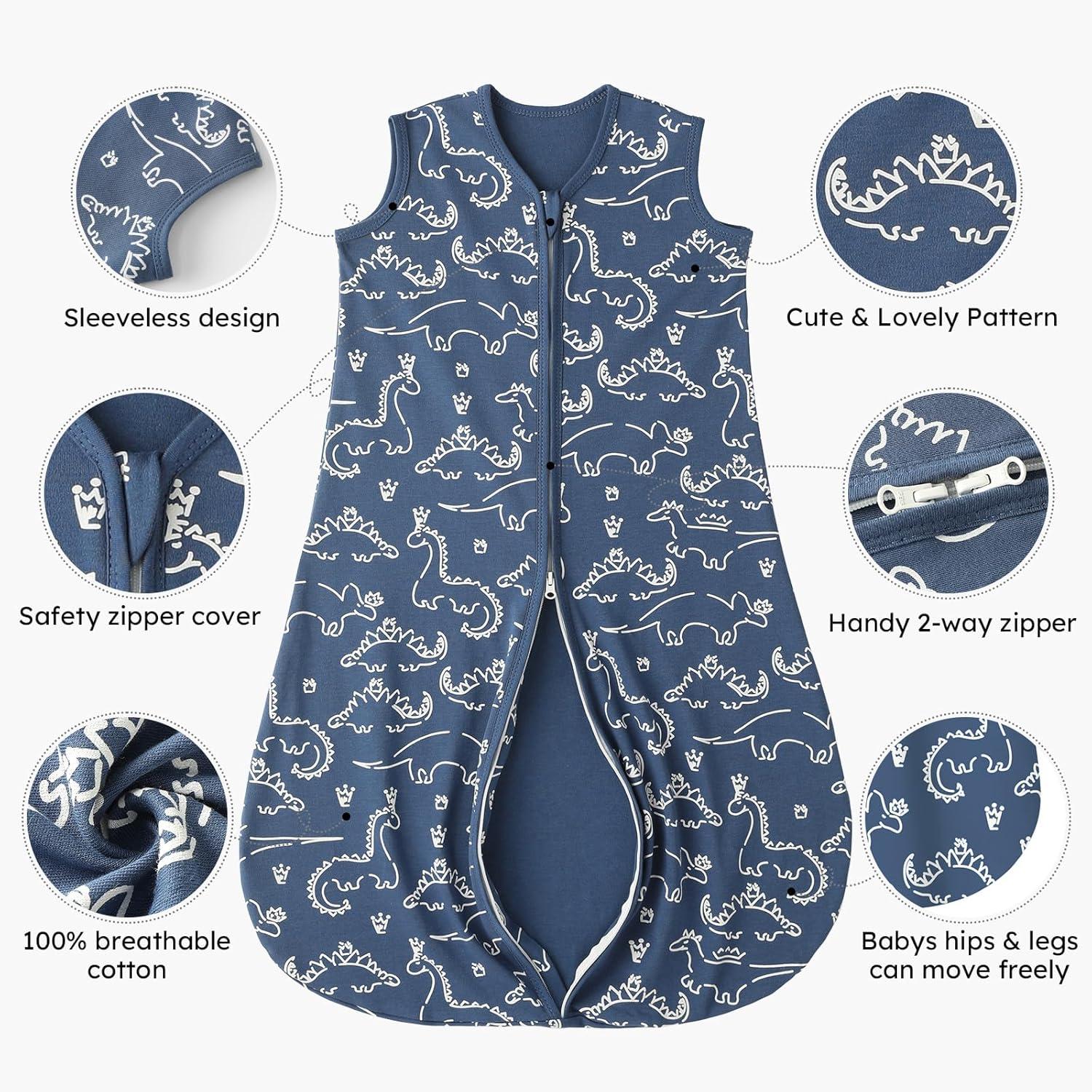 Soft and Cozy – This baby sleep sack made with 100% Organic cotton, super-soft and breathable for comfort. Sleeveless design helps regulate baby's temperature, reducing overheating risk and ensuring warmth and cozy.