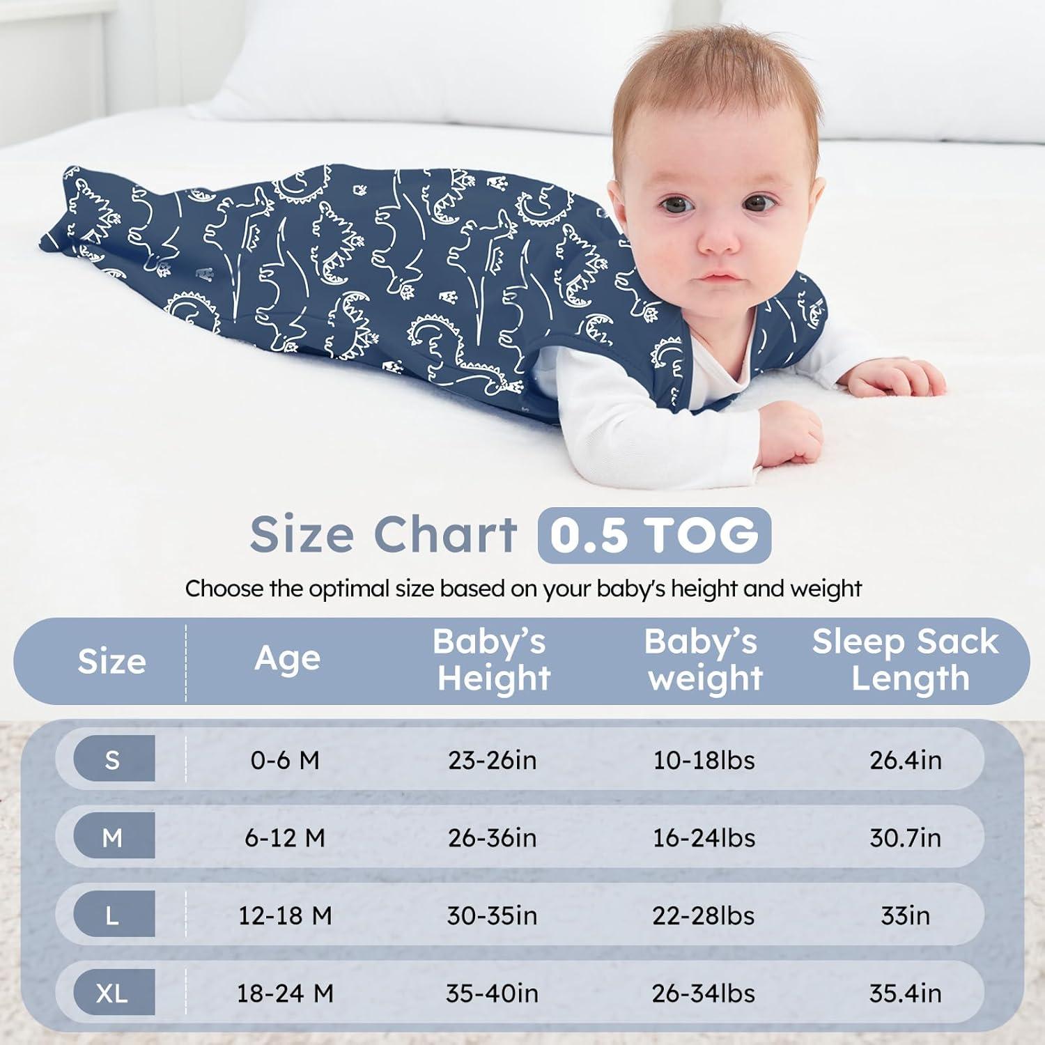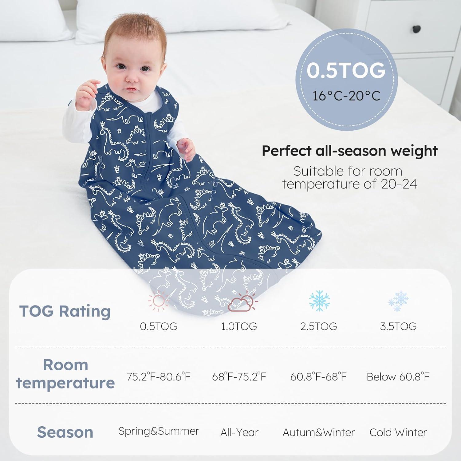 Lightweight 0.5 TOG – The baby sleep sack 0.5 Tog is suitable for moderate temperatures from 75 to 80°F as an ideal option for spring, summer, autumn or taking a nap in air-conditioned rooms, keeping your baby snug and warm.