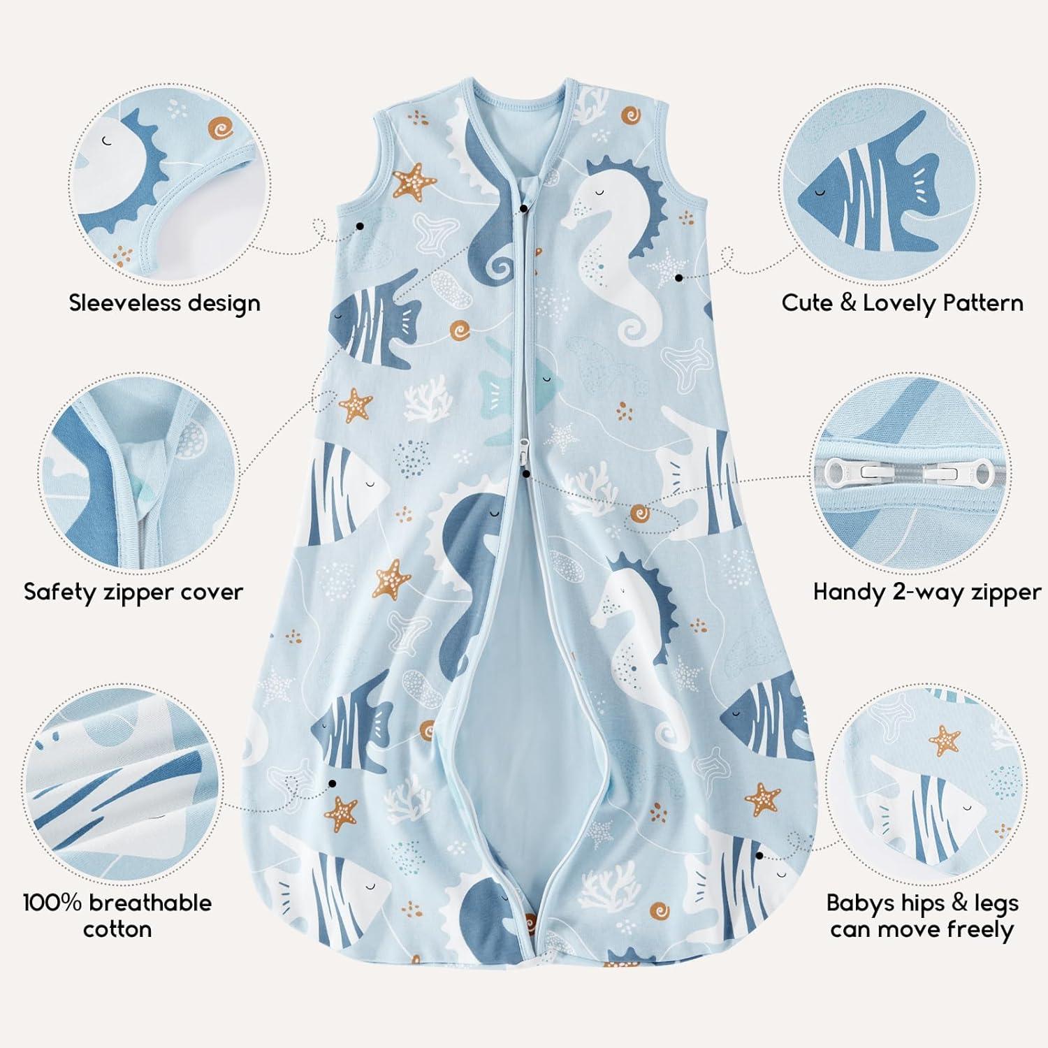Soft and Cozy – This baby sleep sack made with 100% Organic cotton, super-soft and breathable for comfort. Sleeveless design helps regulate baby's temperature, reducing overheating risk and ensuring warmth and cozy.