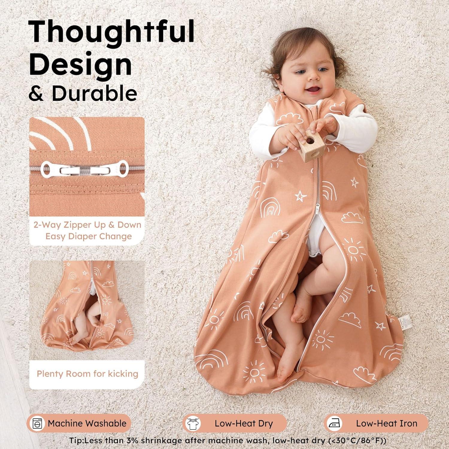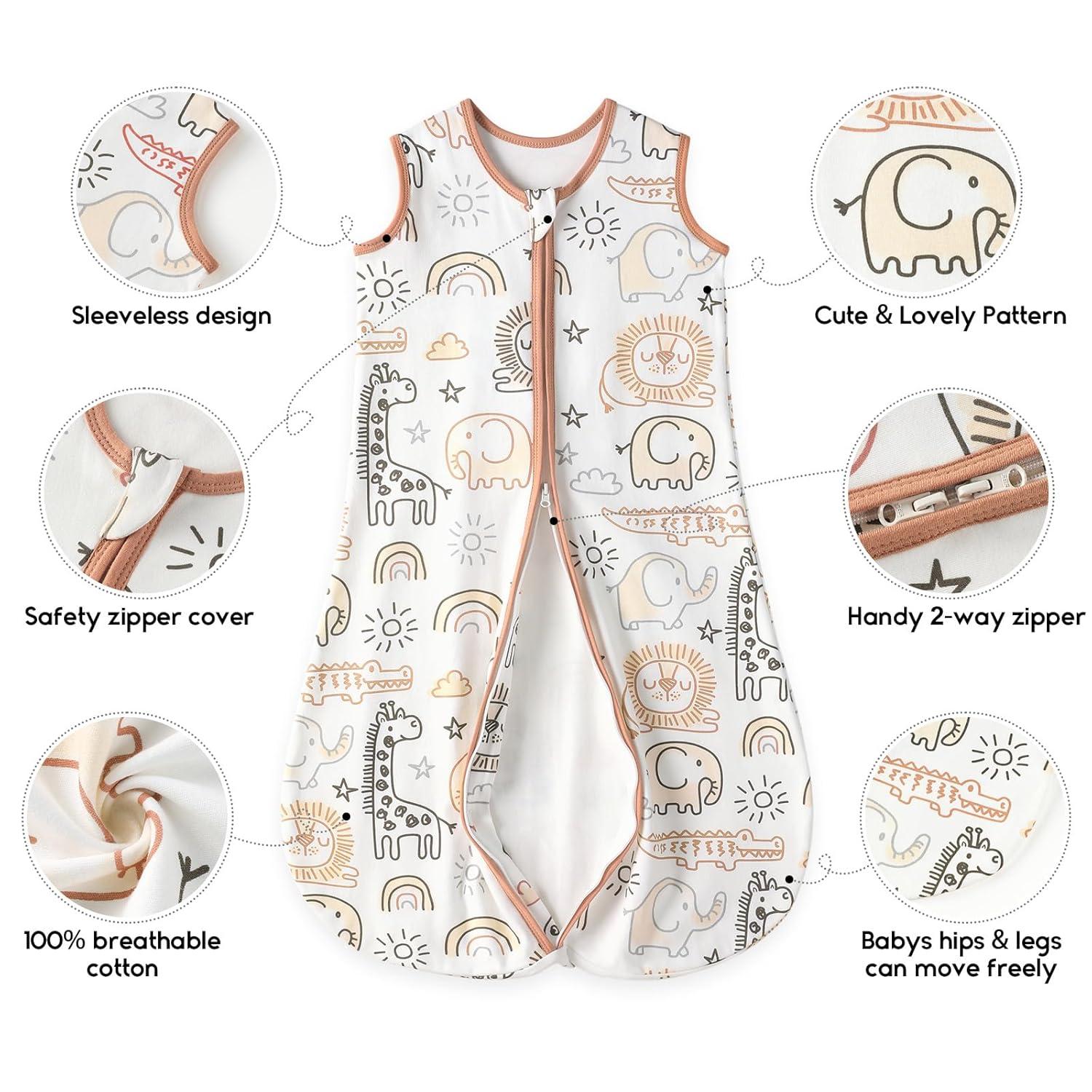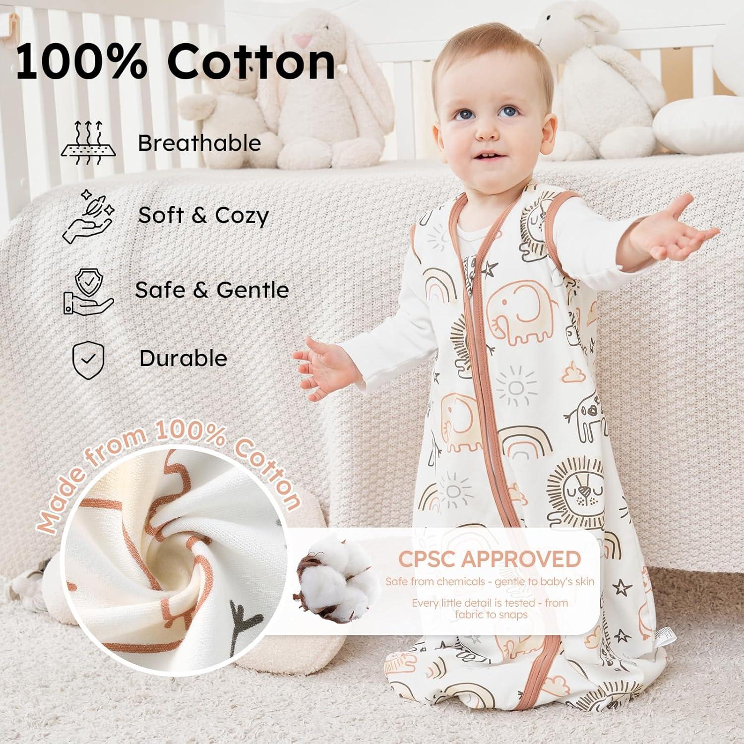 Soft and Cozy – This baby sleep sack made with 100% Organic cotton, super-soft and breathable for comfort. Sleeveless design helps regulate baby's temperature, reducing overheating risk and ensuring warmth and cozy.