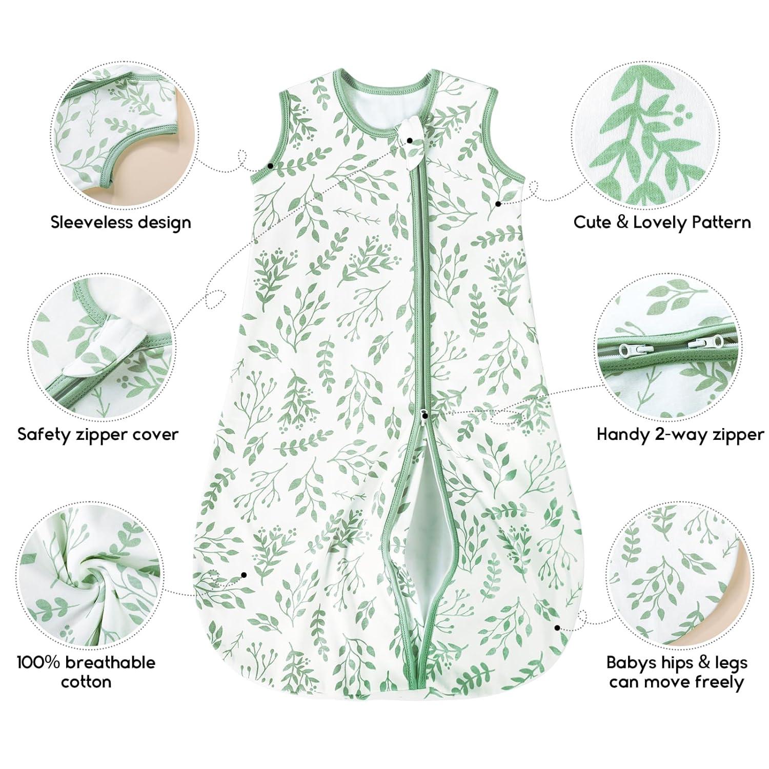 Yoofoss Baby Sleep Sack 0-6 Months 0.5 TOG Baby Wearable Blanket, 100% Organic Cotton Infant Toddler Sleeping Sack 2-Way Zipper Lightweight Sleep Sack, Black Forest(1.0 Tog-leaf&green)