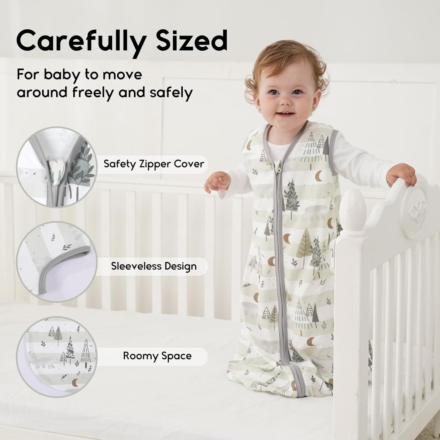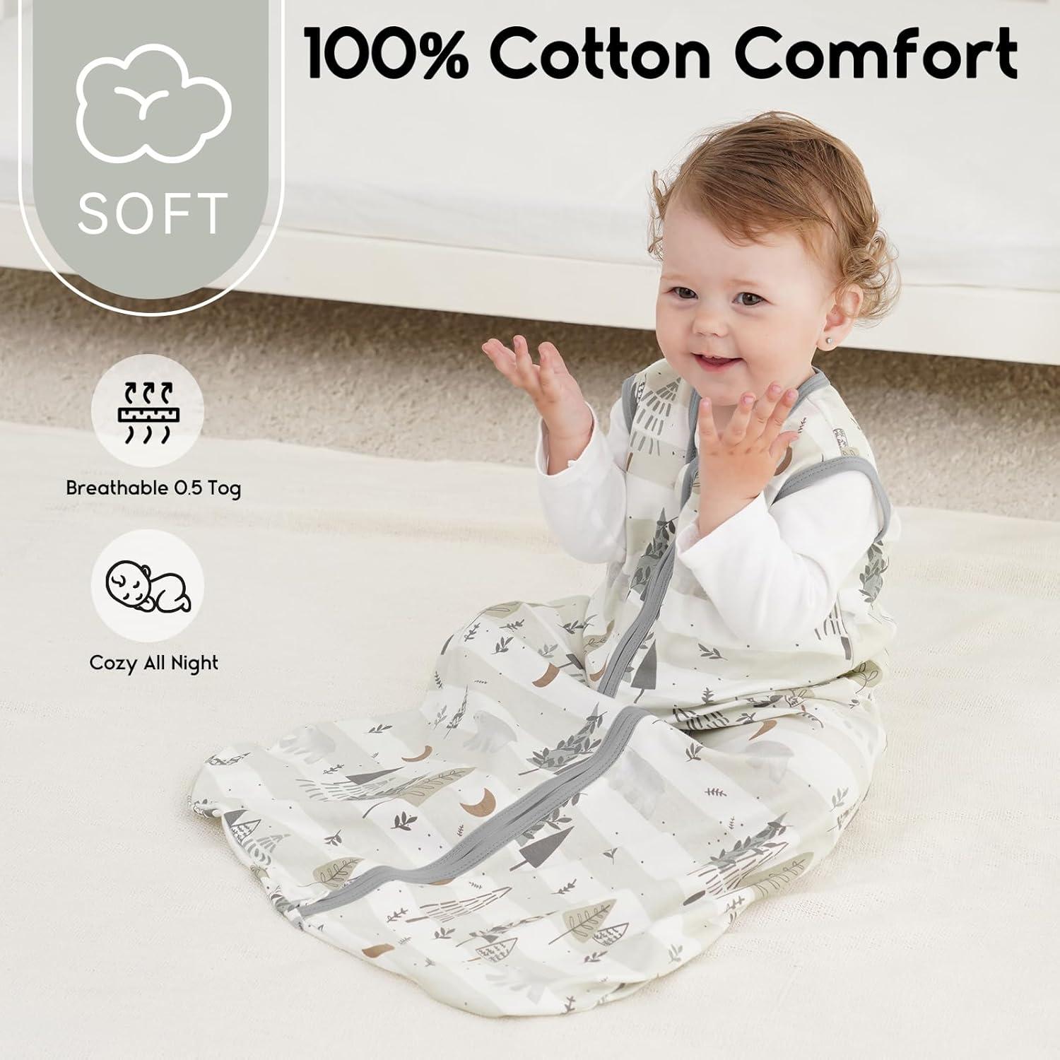 100% Organic Cotton Comfort – This baby sleep sack made with 100% Organic Cotton, super soft and breathable for comfort. The sleeveless design helps regulate baby's temperature, reducing overheating risk and ensuring warmth and cozy.