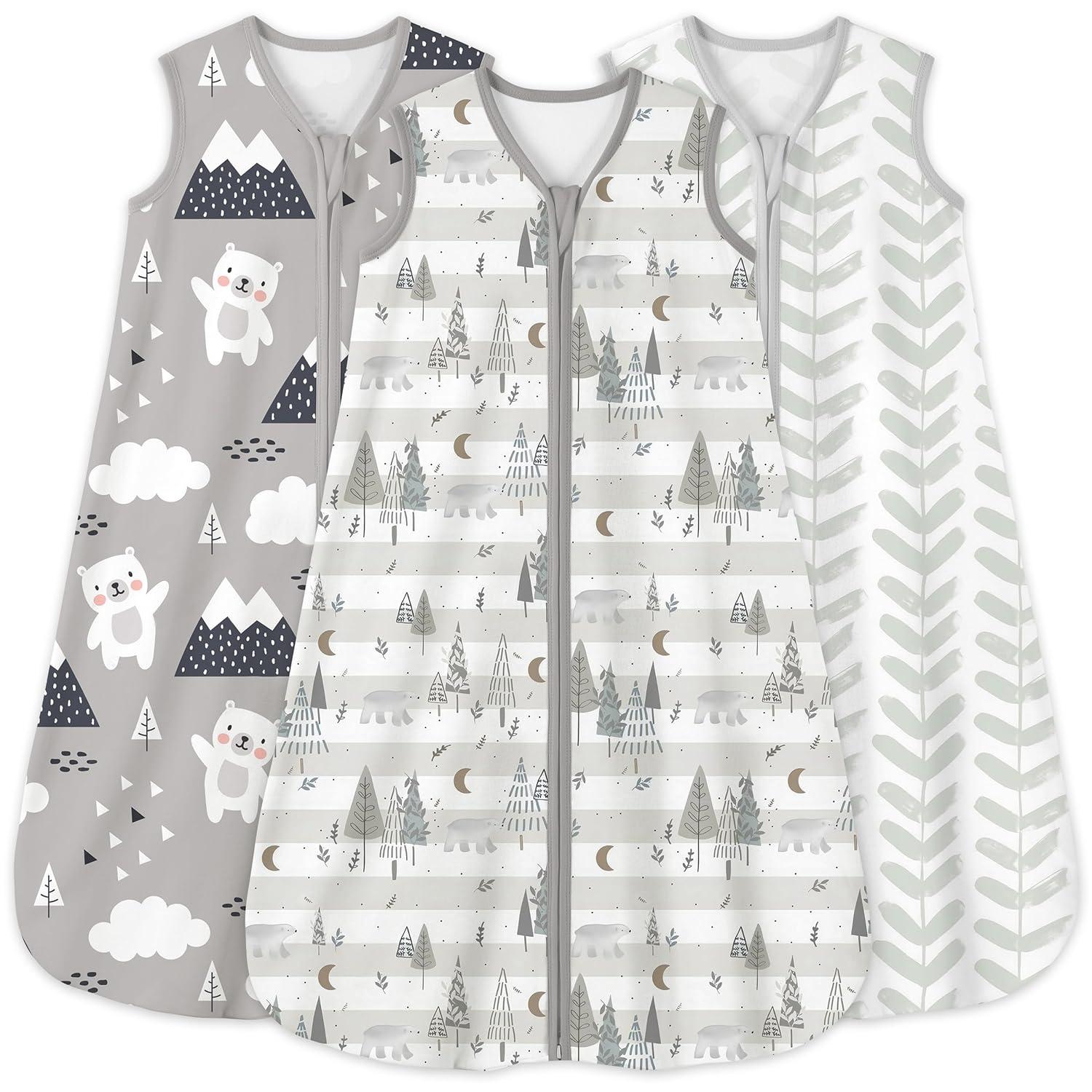 Yoofoss Baby Sleep Sack 6-12 Months 0.5 Tog Wearable Blanket for Baby, 3 Pack 100% Organic Cotton Infant Toddler Sleeping Sack 2-Way Zipper Lightweight Sleep Sack(Grizzly Bear)