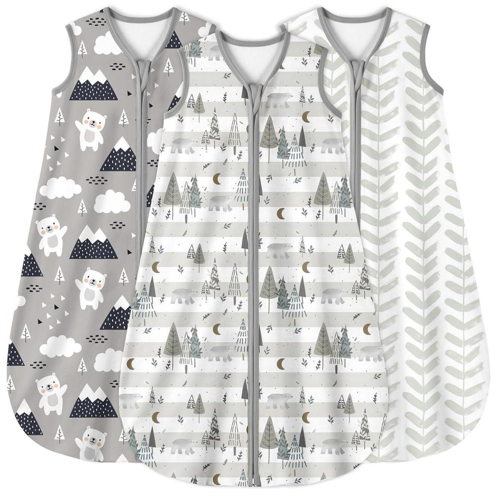 imageYoofoss Baby Sleep Sack 612 Months 05 Tog Wearable Blanket for Baby 3 Pack 100 Organic Cotton Infant Toddler Sleeping Sack 2Way Zipper Lightweight Sleep SackGrizzly Bear