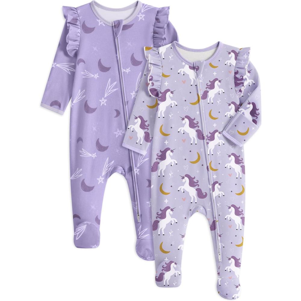 Yoofoss Baby Sleepers Baby Girl Clothes 100% Cotton Pajamas for Newborn 0-3 3-6 6-9 Months Sleep and Play Pjs(Purple Unicorn)