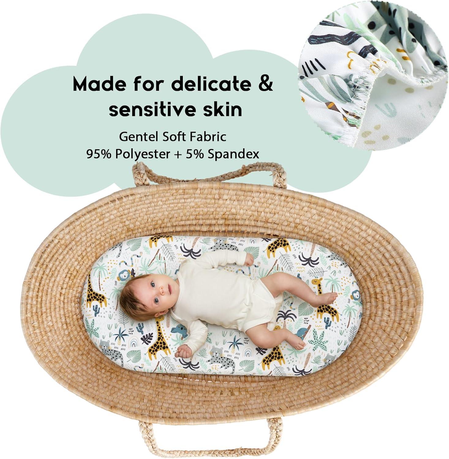 Yoofoss Bassinet Sheets Baby Girl Boy, Fitted Bassinet Sheet Set 2 Pack Universal Fit for Cradle Moses Basket Oval Rectangle Round Hourglass Mattress, Soft Breathable Green + Giraffe
