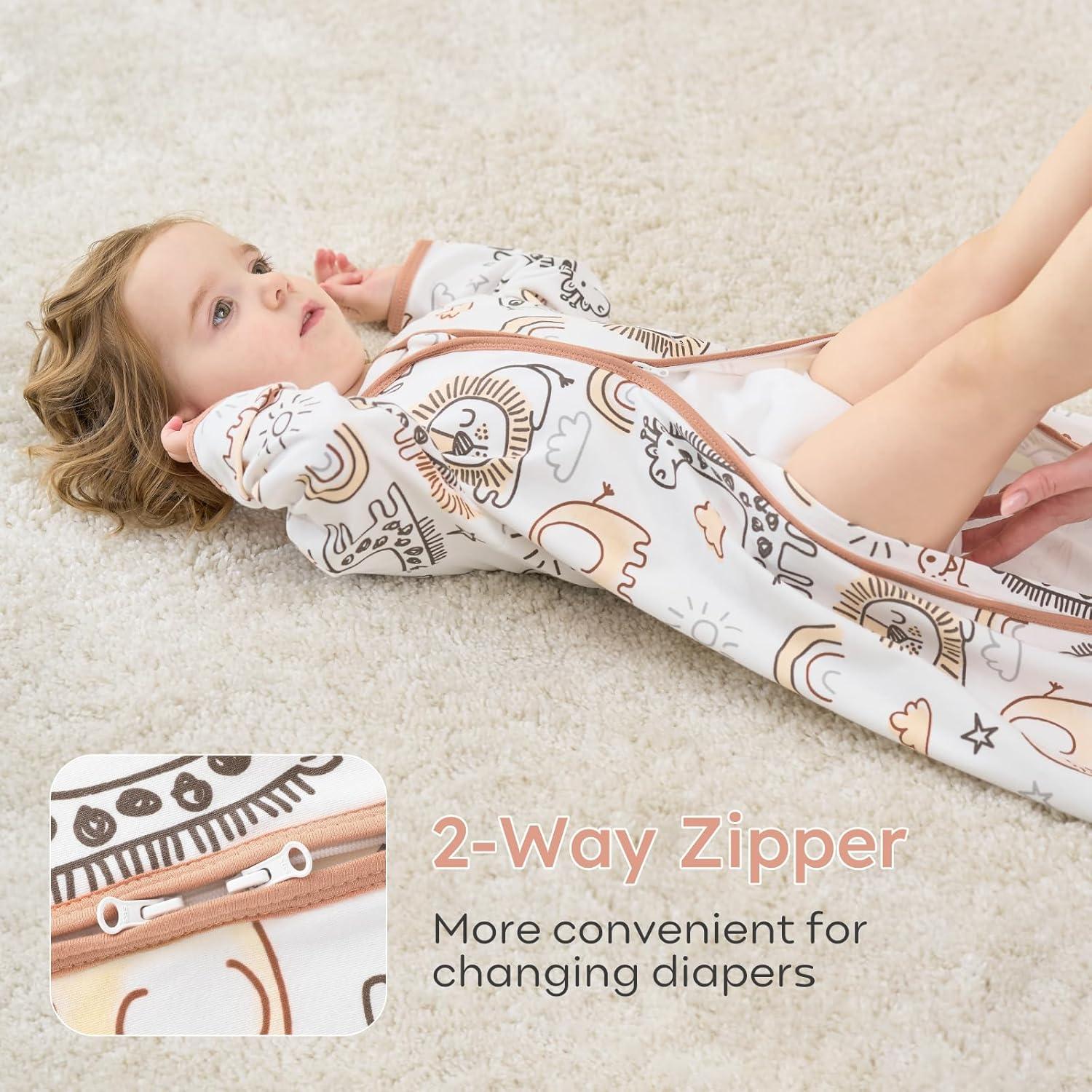 Hidden 2-way Zipper – Hidden zipper and neckline design to avoid any potential scratching baby's delicate skin. Double zipper allows for effortless dressing and making nighttime changes easier. The high-grade zippers of sleep sacks for baby glide smoothly without getting stuck or jammed, easily open and close.