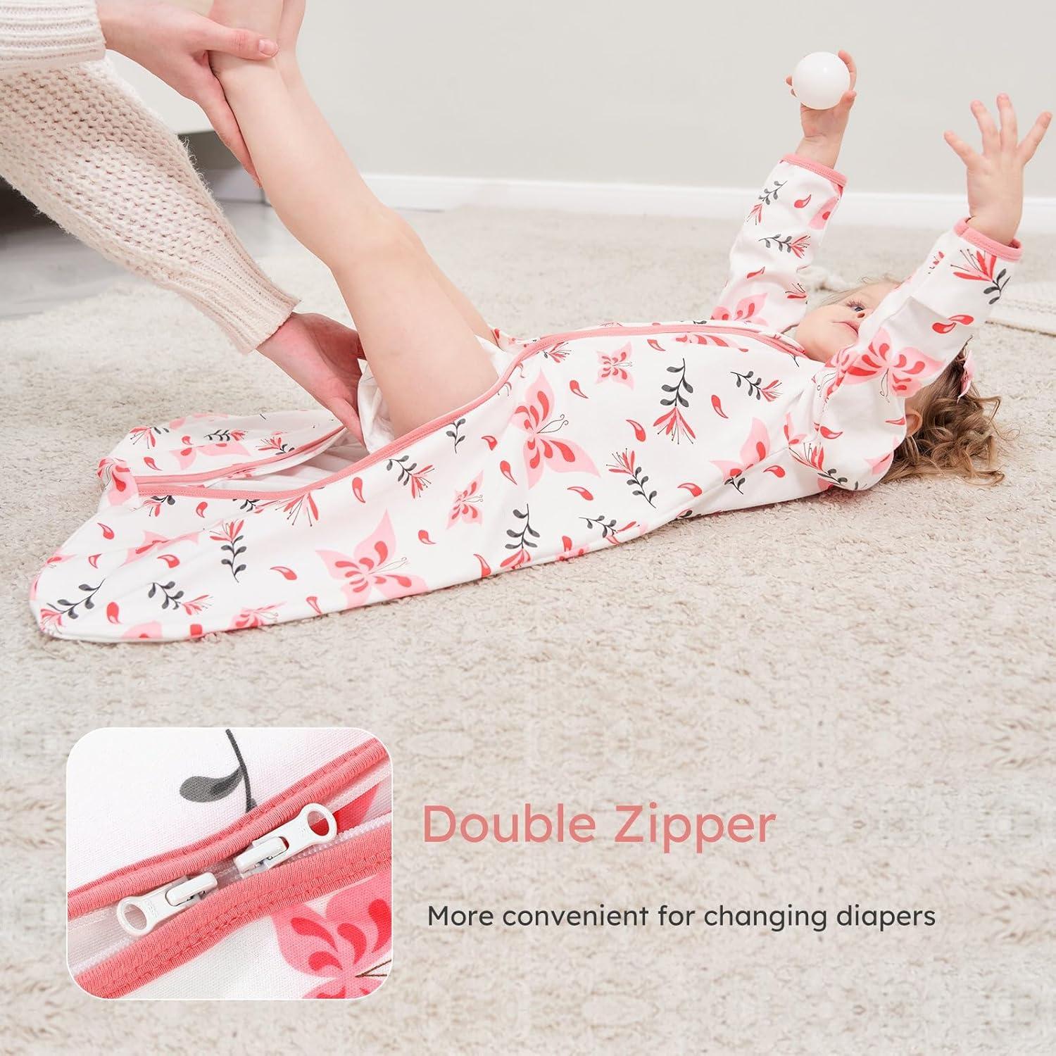 Hidden 2-way Zipper – Hidden zipper and neckline design to avoid any potential scratching baby's delicate skin. Double zipper allows for effortless dressing and making nighttime changes easier. The high-grade zippers of sleep sacks for baby glide smoothly without getting stuck or jammed, easily open and close.