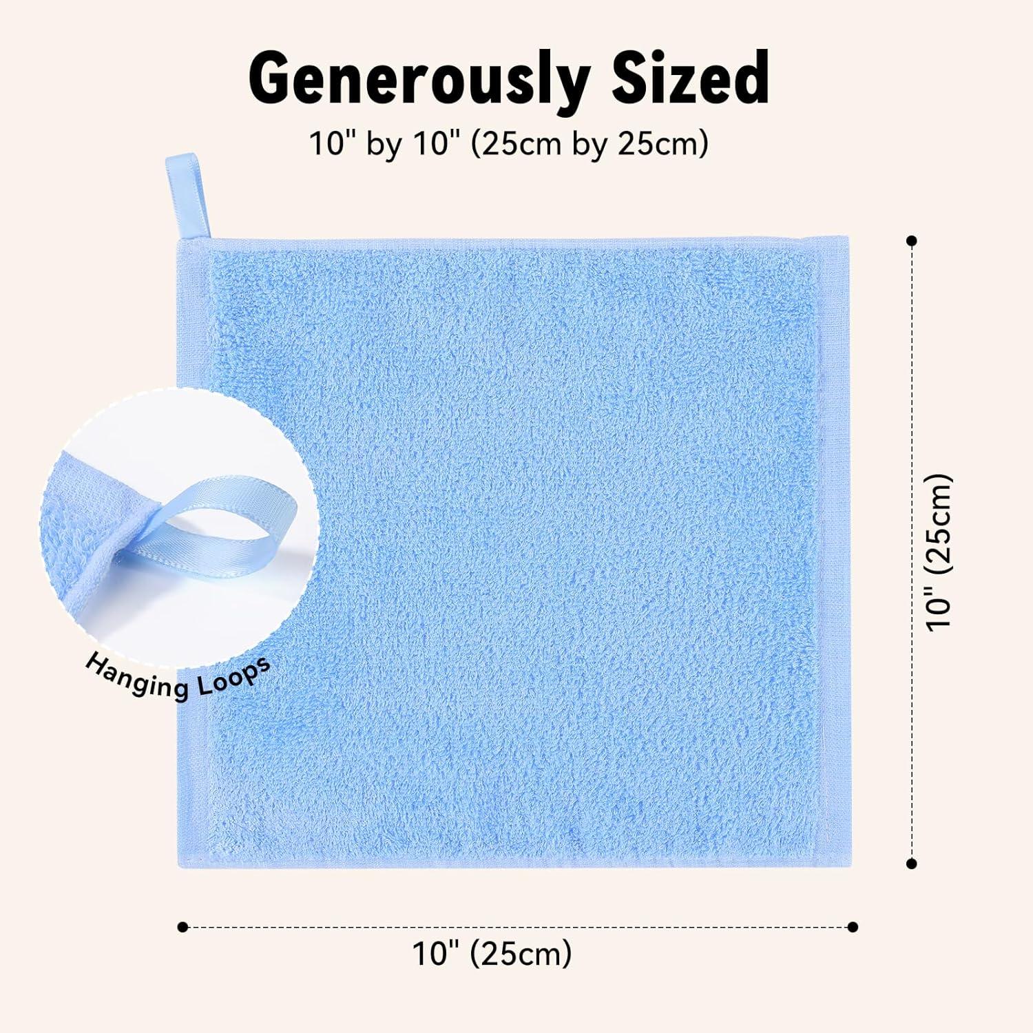 VALUE BUNDLE: These hand towel are the perfect small-sized 10‘’x10'' to keep next to yoga mat, in golf bag, in kitchen, in bathroom or any place where a larger size towel is unnecessary. Not only for adult use, but also for baby or toddler.