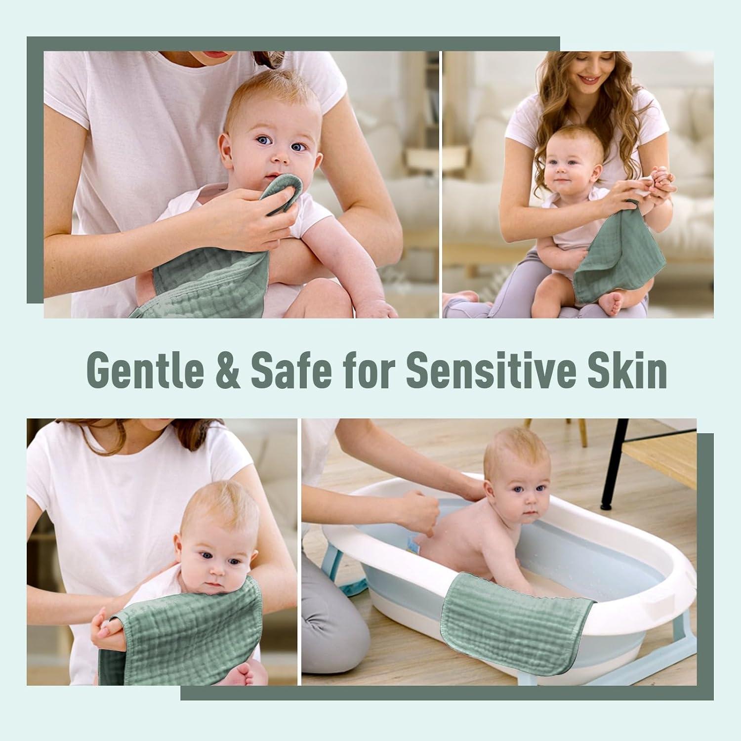 Yoofoss Muslin Burp Cloths for Baby 10 Pack 100% Organic Cotton Baby Washcloths for Boys Girls Large 20”X10” Super Soft and Absorbent White(Dark Green)