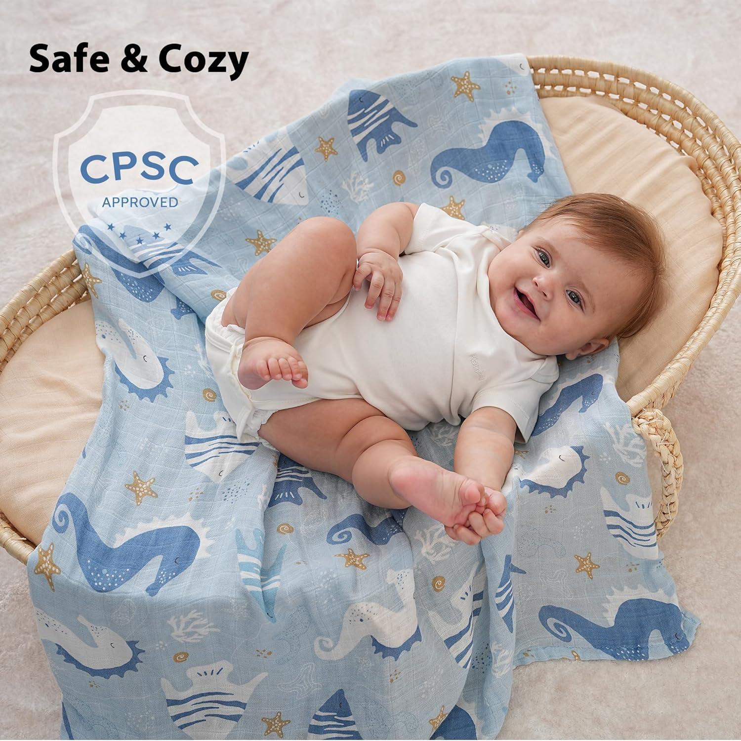 Soft & Breathable:Made of 70% rayon from bamboo and 30% organic cotton, Yoofoss muslin swaddle blankets are breathable and skin-friendly, the softness of swaddle blanket is three times than regular cotton. Baby swaddle blankets are certified to meet Consumer Product Safety Commission (CPSC), ensuring meticulous quality and the highest standards of safety for baby.