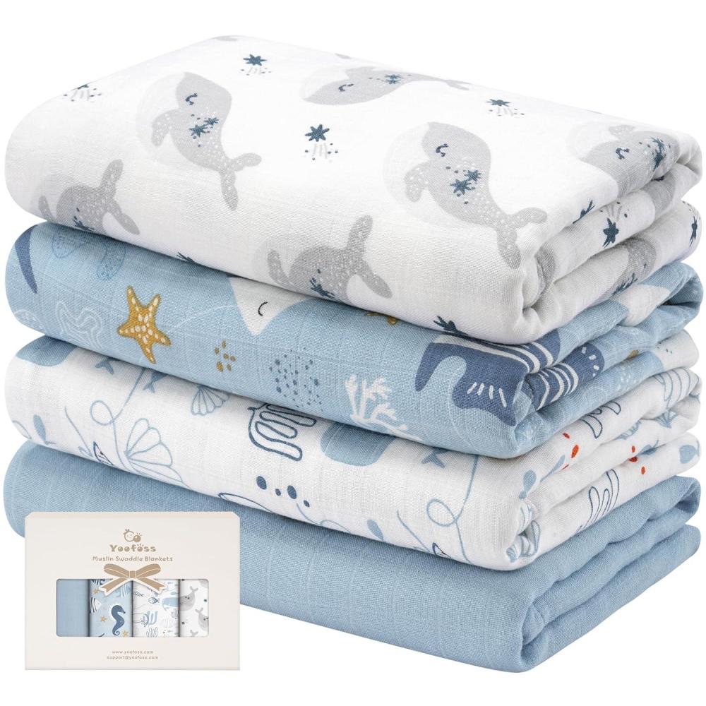 Yoofoss Organic Muslin Swaddle Blankets, Baby Blankets, 47 x 47 Inches Receiving Blanket for Baby Boys and Girls, Baby Essentials for Newborns Soft Breathable(Blue Ocean)