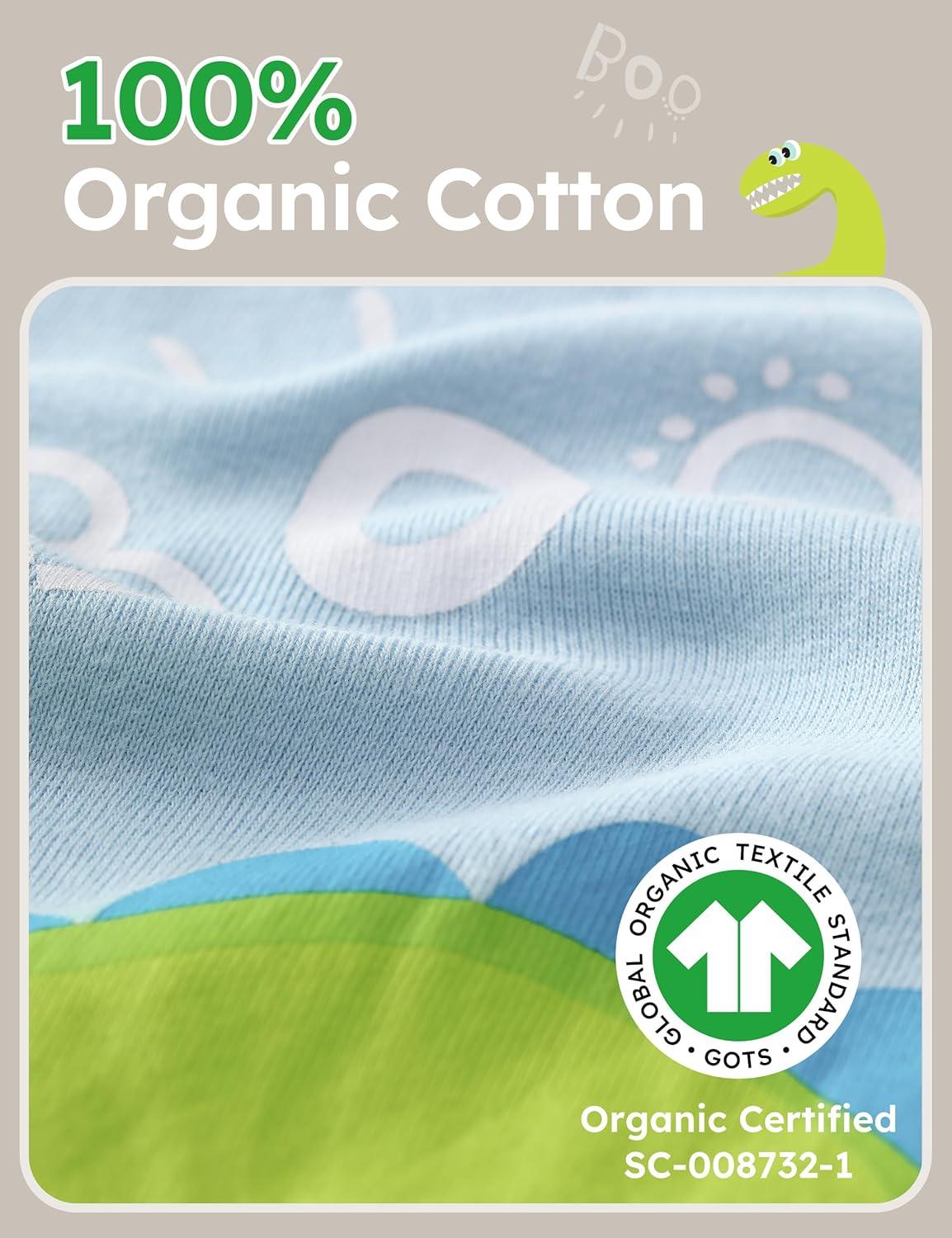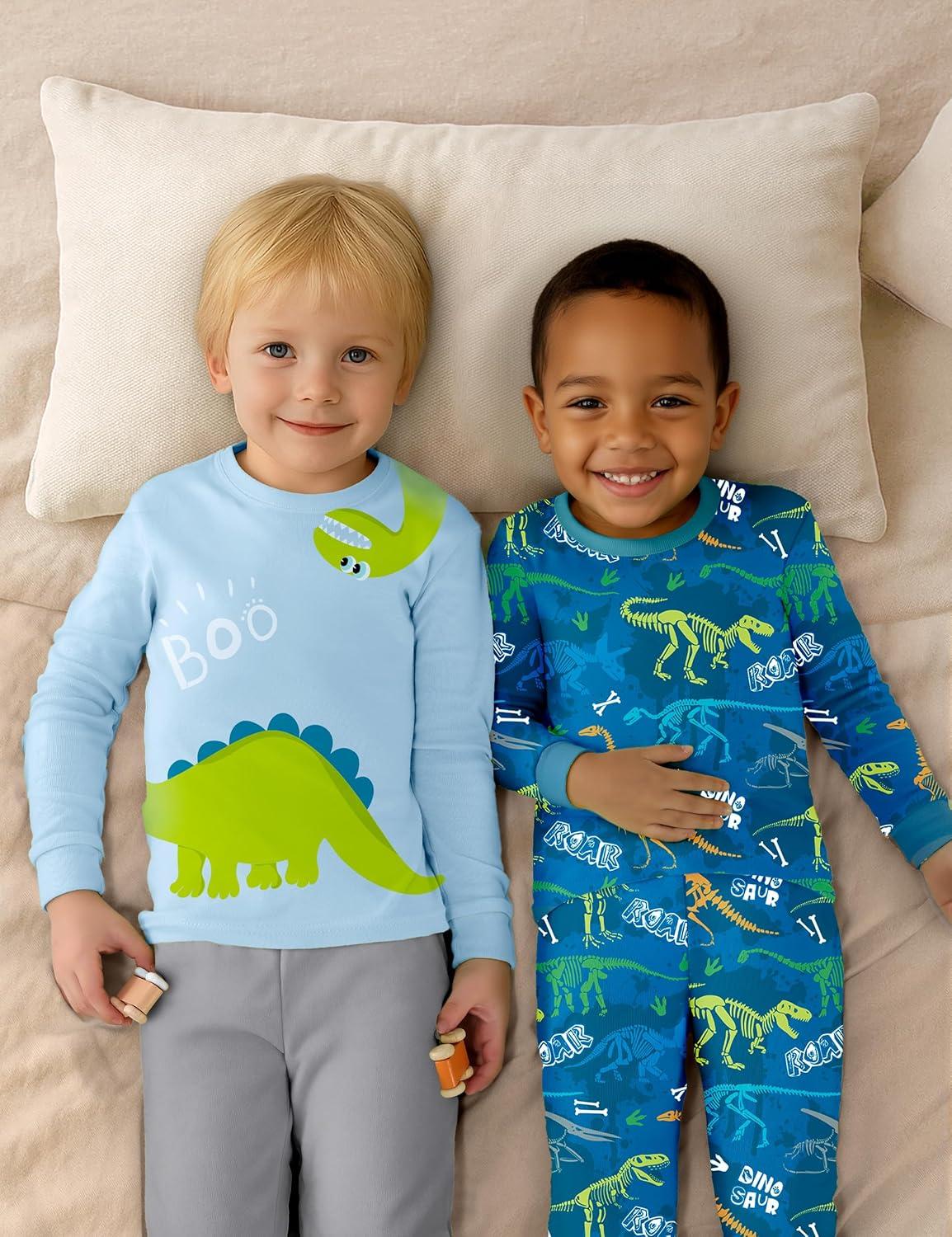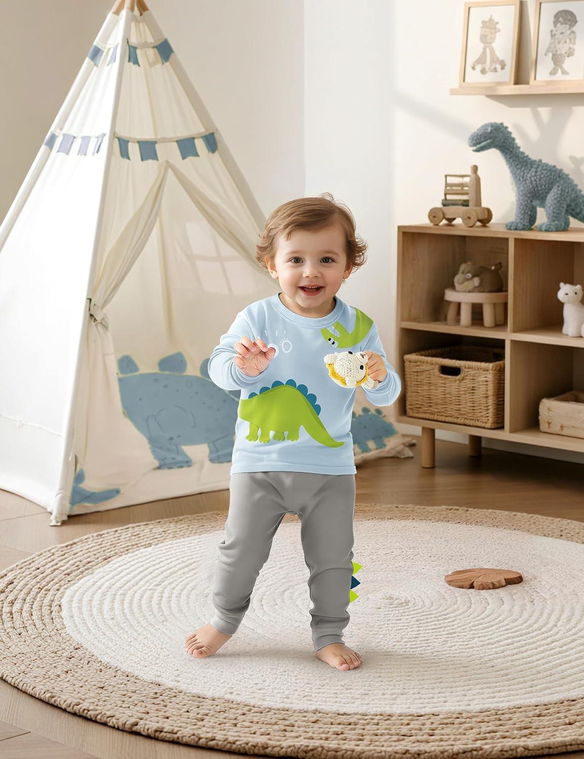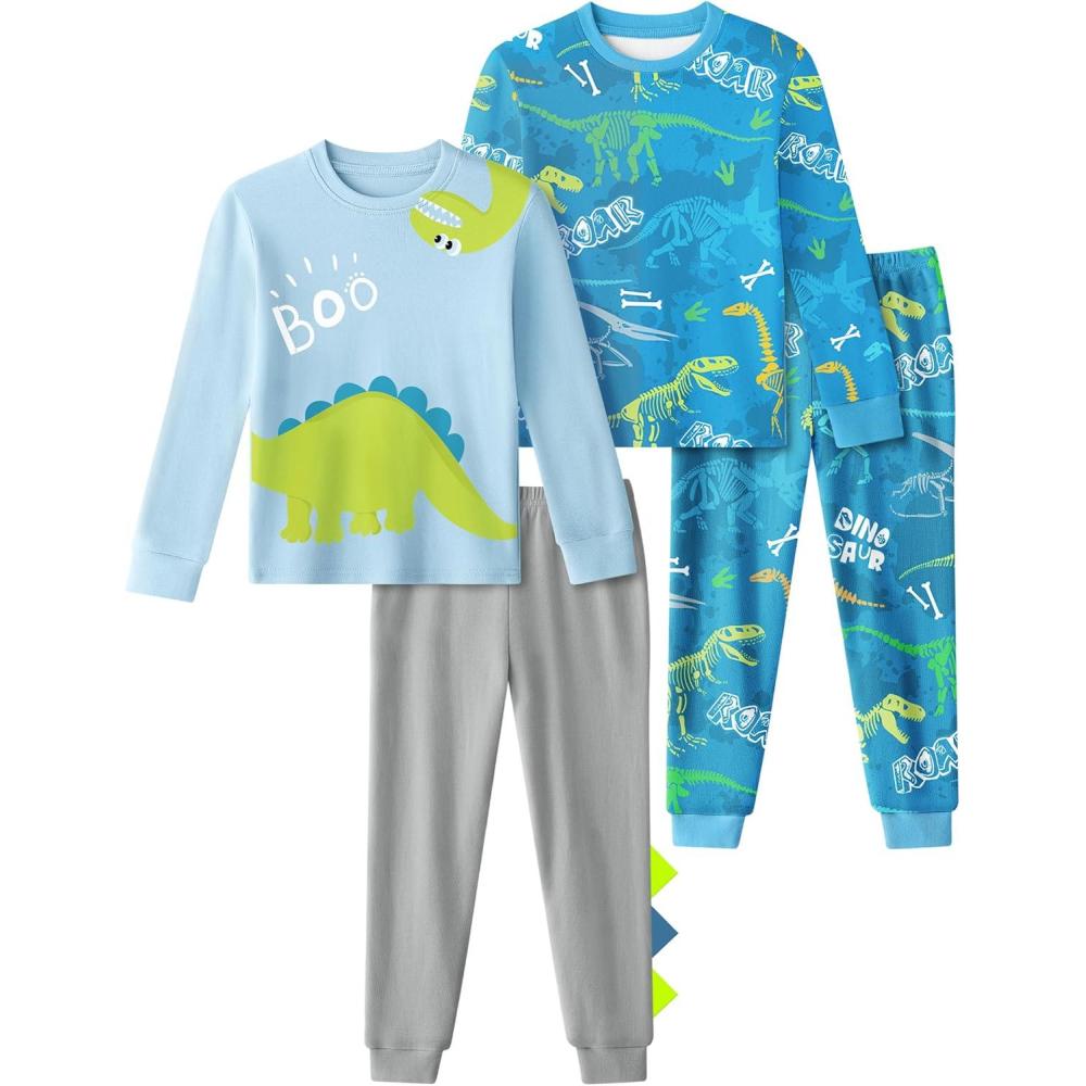imageYoofoss Toddler Pajamas 100 Organic Cotton 4 Piece Long Sleeve Winter Pajama Set Kids Pajamas Boys Girls Snug Fit Pjs SetGreen Gray Dinosaur