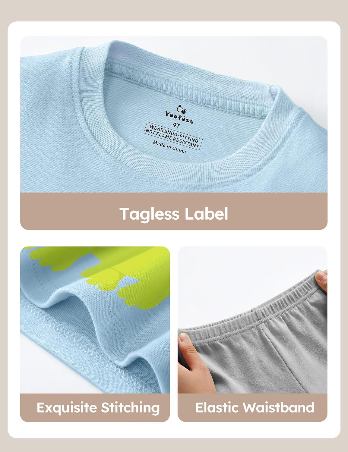 Yoofoss Toddler Pajamas 100% Organic Cotton 4 Piece Long Sleeve Winter Pajama Set Kids Pajamas Boys Girls Snug Fit Pjs Set(Green Gray Dinosaur)